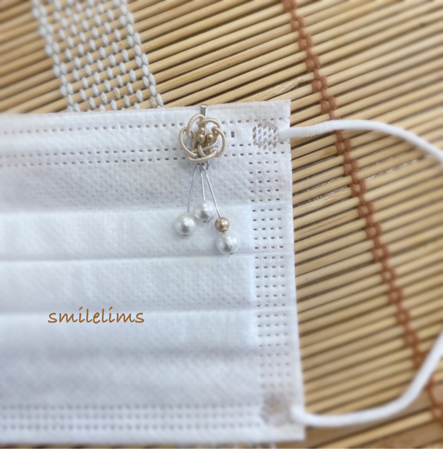 水引にコットンパール、スワロフスキーのクリスタルパールを組み合わせたマスクチャームです(*˙˘˙*)ஐ